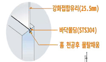 25.52mm Tempered Laminated Glass / STS304 Floor Molding / Grooved and Filled with Mortar After Perforation