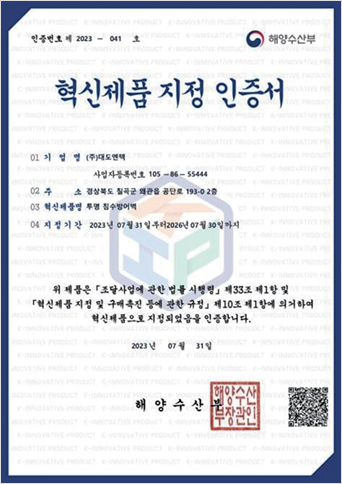 (Tested and Verified by the Korea Testing & Research Institute for Chemical Convergence)
