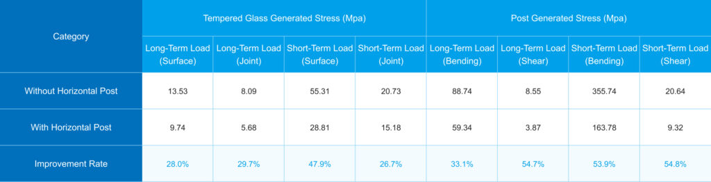 and stress on the support structures by up to 54.8% compared to conventional designs without horizontal supports.