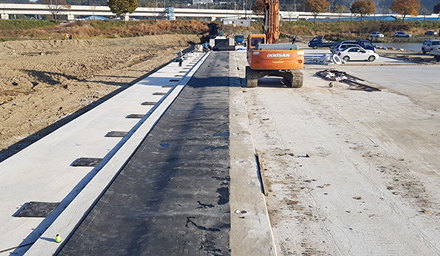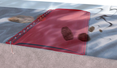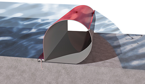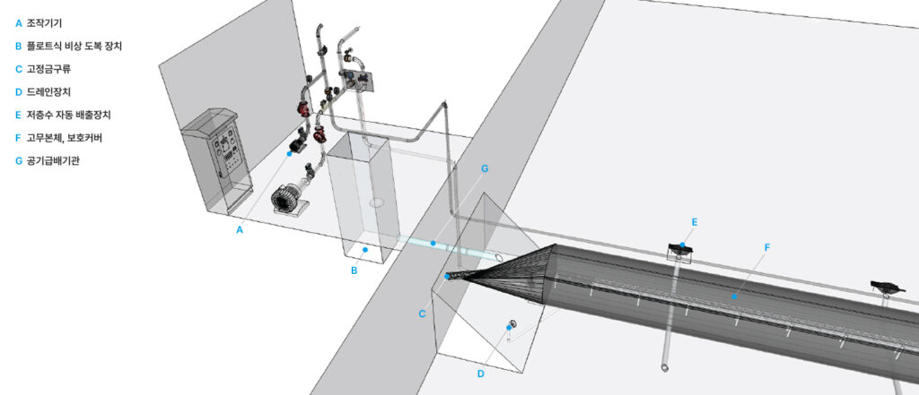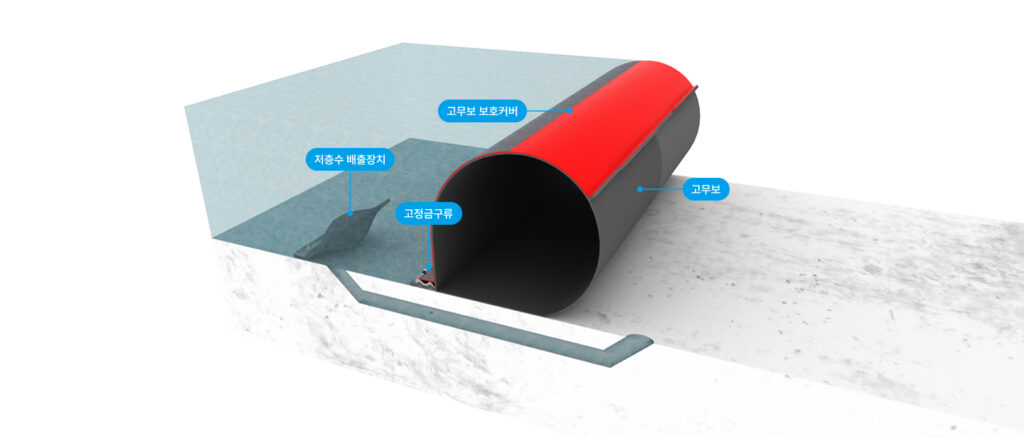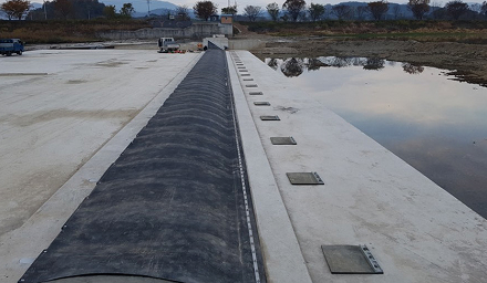 특수제작된 고무본체에 공기를 주입/배출하여 고무본체를 기립/전도시키는 공압식 고무보 공법