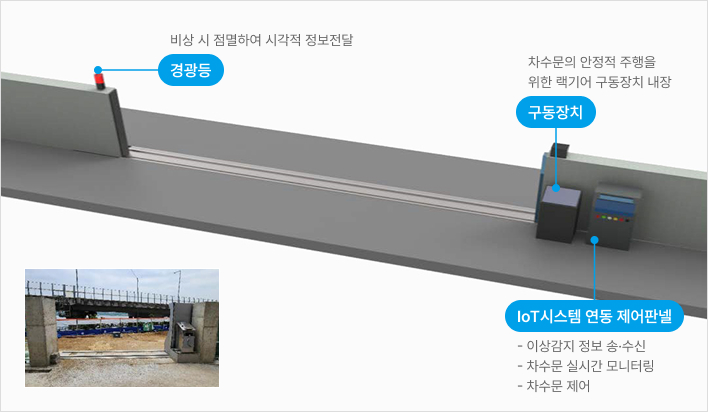 제품 ㈜대도엔텍, 재해 예방을 위한 최고의 선택 가동보 홍수방어벽 자동침수방어벽 슬라이딩침수방어벽 기립식침수방어벽 슬라이딩침수방어벽 랙바 구동장치로 좌우로 개폐되는 자동 침수방어벽 – 서울시 광장동 포제스 한강 오피스텔 (2.0mH x 4.0mL) 공법 개요 작동원리 차수문 열림 시 차수문 닫힘 시