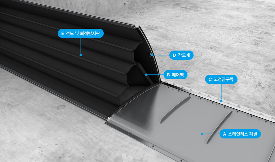 에어백 본체 / 스테인리스 패널 / 고정금구류 / 콘크리트 기초 / 기계설비 / 송풍 파이프